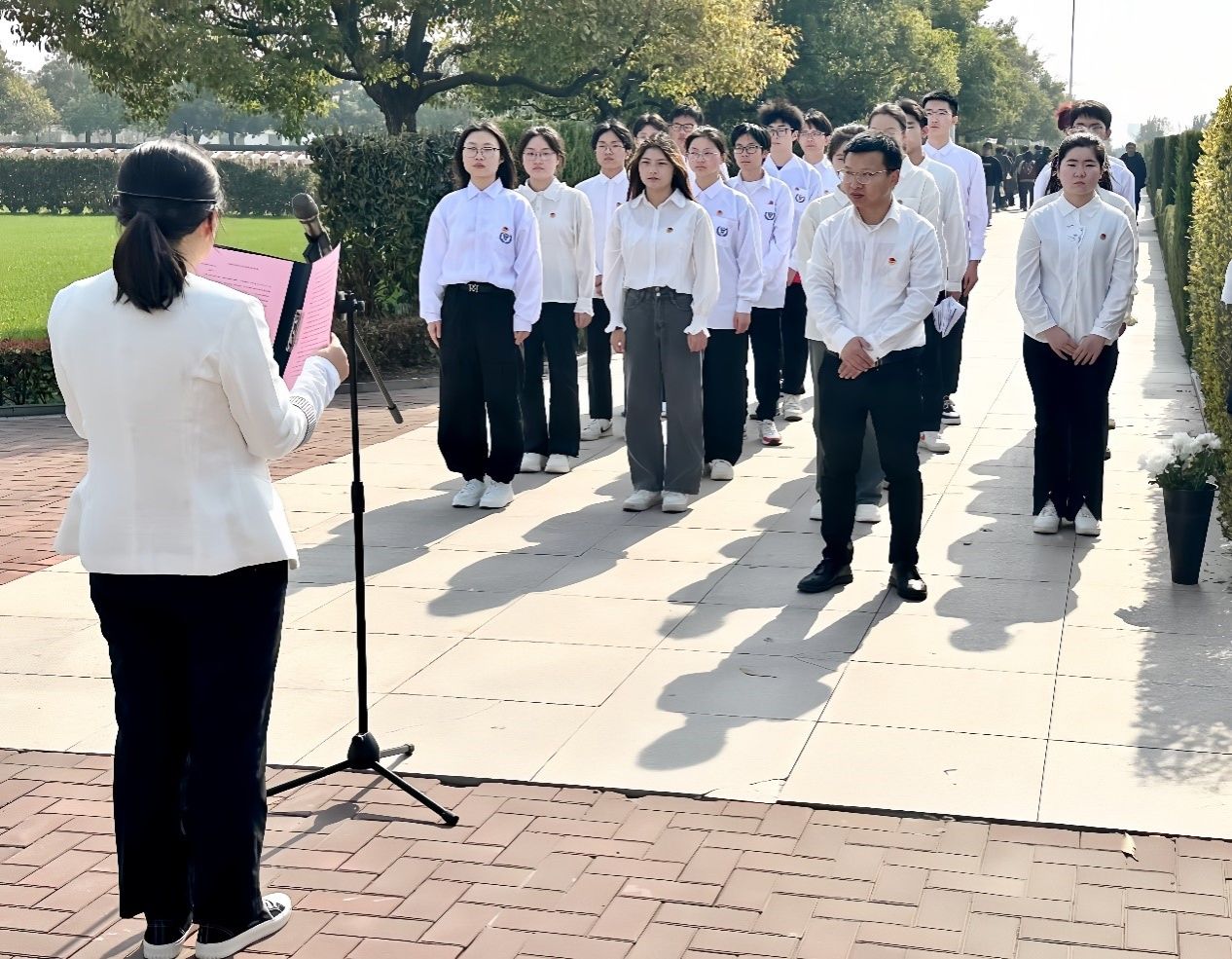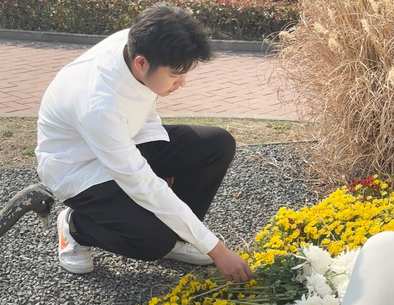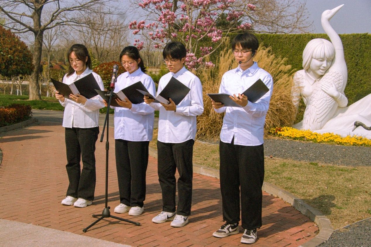 活动中,全体师生统一着装,排列整齐,庄严肃立,聆听陵园工作人员对徐秀娟烈士的生平事迹介绍,感悟“鹤魂精神”的磅礴力量;员工代表深情朗诵诗歌《一个真实的故事》,向徐秀娟烈士表达了浓浓的哀思之情;B统计231班班长张利军带领全体师生重温湿地保护志愿者誓词,铿锵有力的誓言表达着广大团员青年对徐秀娟烈士的深切缅怀和传承“鹤魂精神”的坚定决心;随后,全体师生依次走到徐秀娟纪念雕像前敬献鲜花并瞻仰烈士,深情缅怀为驯鹤事业而献出年轻生命的徐秀娟烈士。