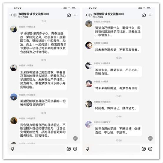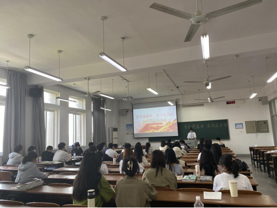 宣讲员B数据211团支书展悦同学首先带领同学们重温了五四青年节的历史渊源和中国社会主义青年团的灿烂辉煌发展历程。展现了一代代青年为党分忧、为国尽责、为民奉献的精神品格和不忘初心、不畏艰险、甘于奉献的时代精神,使大家认识到青年是国家的希望,是民族的未来。在第二部分,同学们共同欣赏了为庆祝建团百年的歌曲《闪光如你》和微视频《我的超能力》,致敬百年历史中的闪光青年,同时表达当代青年人志存高远、接续奋斗,立志做有志气、骨气、底气新时代青年的抱负和决心。