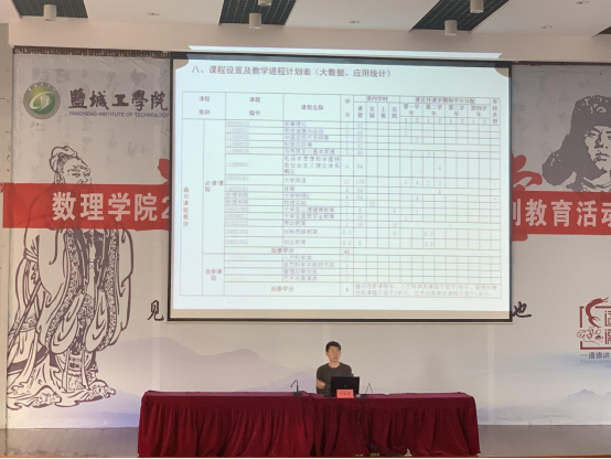 会议第二阶段,经理助理田灿荣根据多年的教学经验给同学们传授了如何学习数学、适应大学课程。专业系主任左冬冬向新生简要介绍了两个专业各自的课程安排及人才培养方案,并根据课程安排给同学们提出了学习规划方面的一些建议。