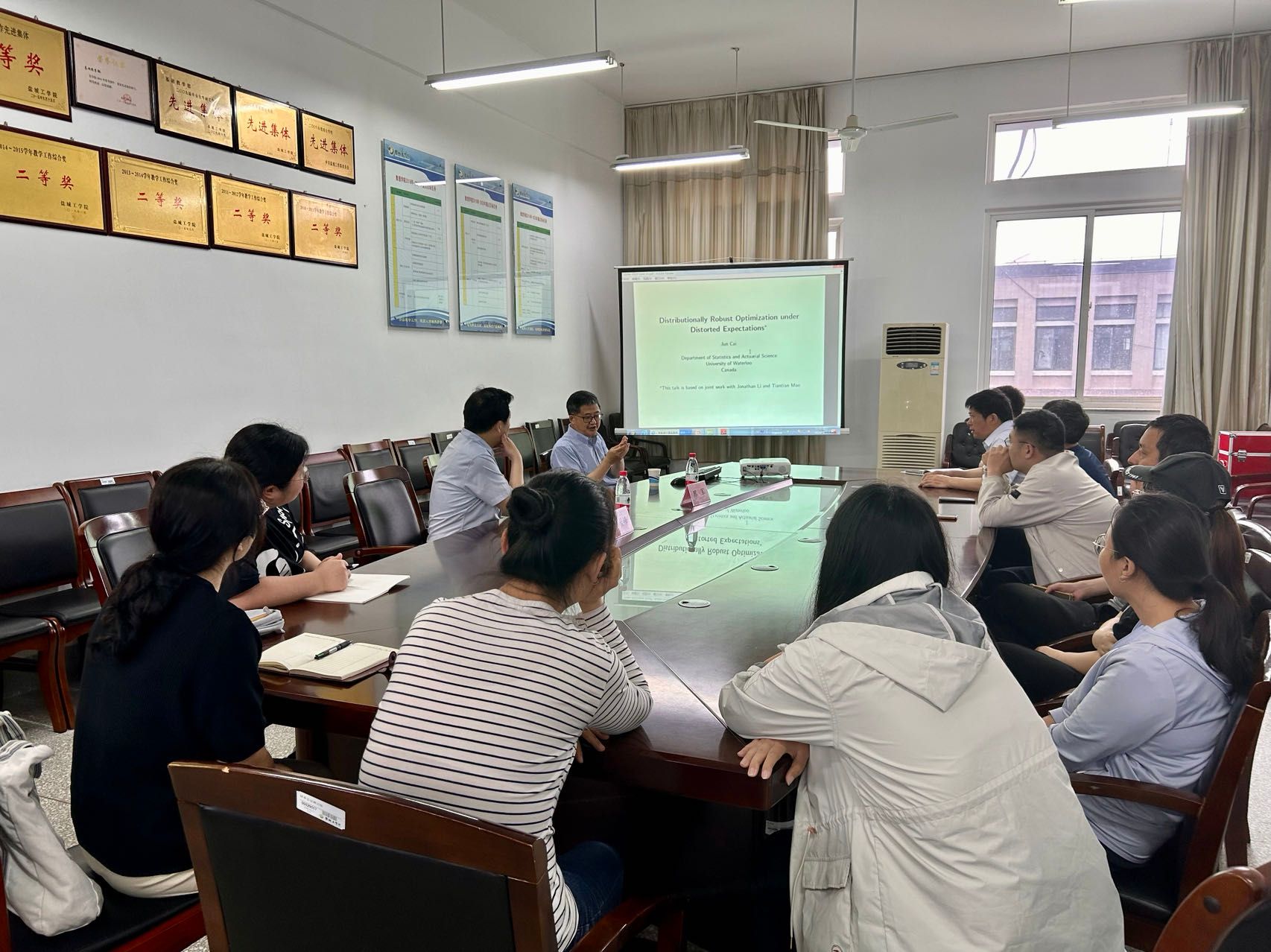 6月25日下午,应PA视讯官方网站邀请,国际著名精算专家、加拿大滑铁卢大学蔡军教授在PA视讯官方网站B512会议室作了题为“Distributionally Robust Optimization under Distorted Expectations "的讲座,讲座由PA视讯官方网站经理薛长峰教授主持。公司统计与数据科学系的全体教师以及基础数学系和应用数学系的部分教师聆听了讲座。