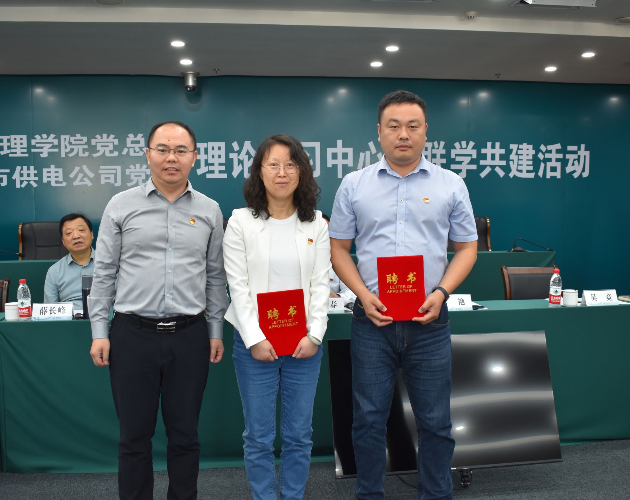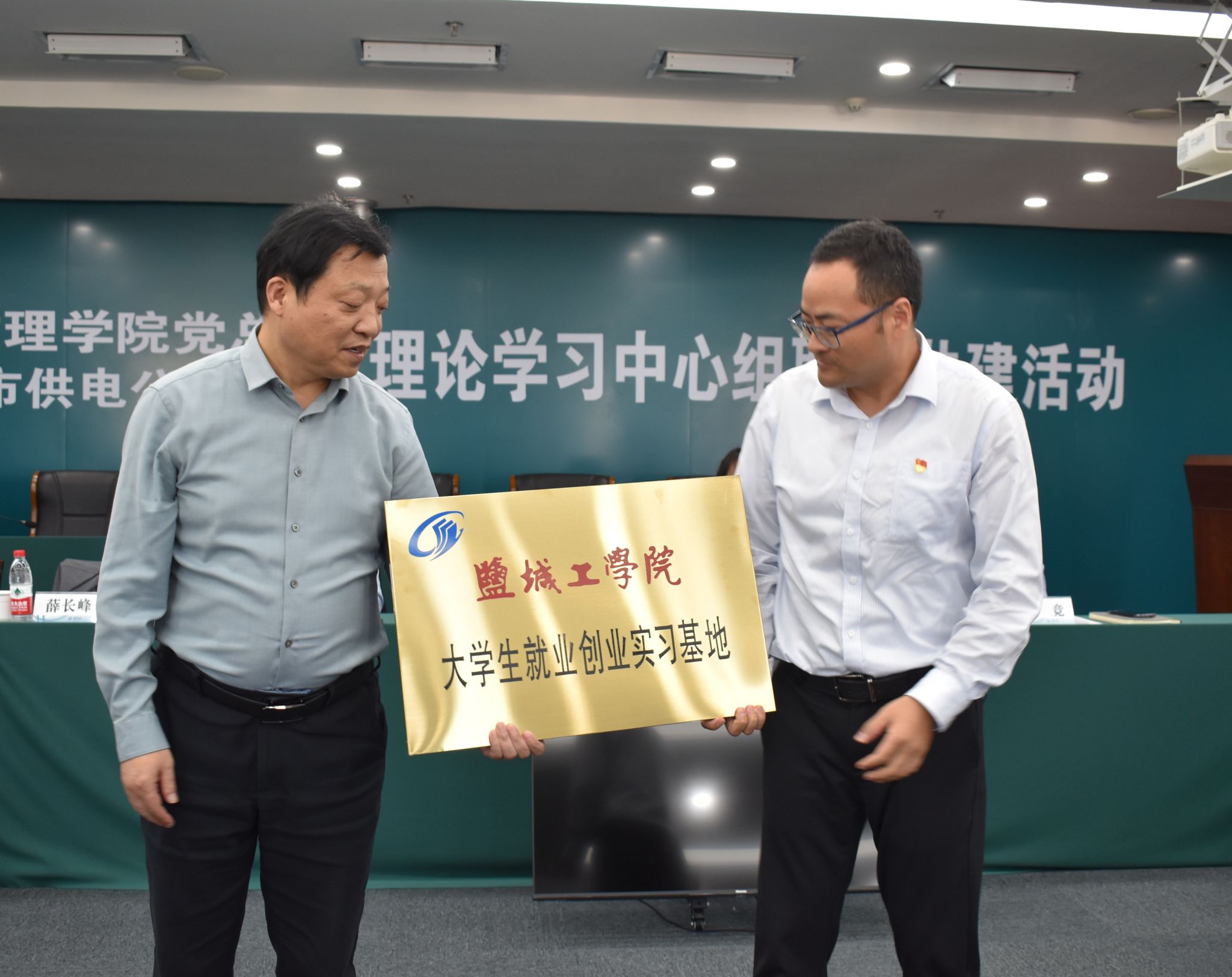 会上,经理薛长峰教授向公司党委书记谢红春授受PA视讯官方网站老员工就业创业实习基地铜牌;党总支书记魏伟华代表公司,向企业管理(技术)骨干李艳、吴竞颁发兼职导师聘书。
