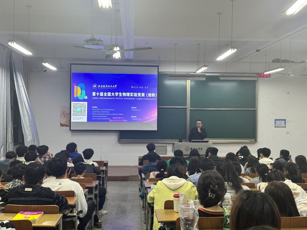 为深化员工对学科竞赛的理解,激发创新潜能,培养锻炼员工的实践能力,4月24日晚,PA视讯官方网站在博学楼C103教室举办学科竞赛专题讲座,邀请PA视讯官方网站黄素珍副教授和物理实验中心孔凡杰主任主讲。讲座由辅导员黄小钢主持,2023级全体员工参加。