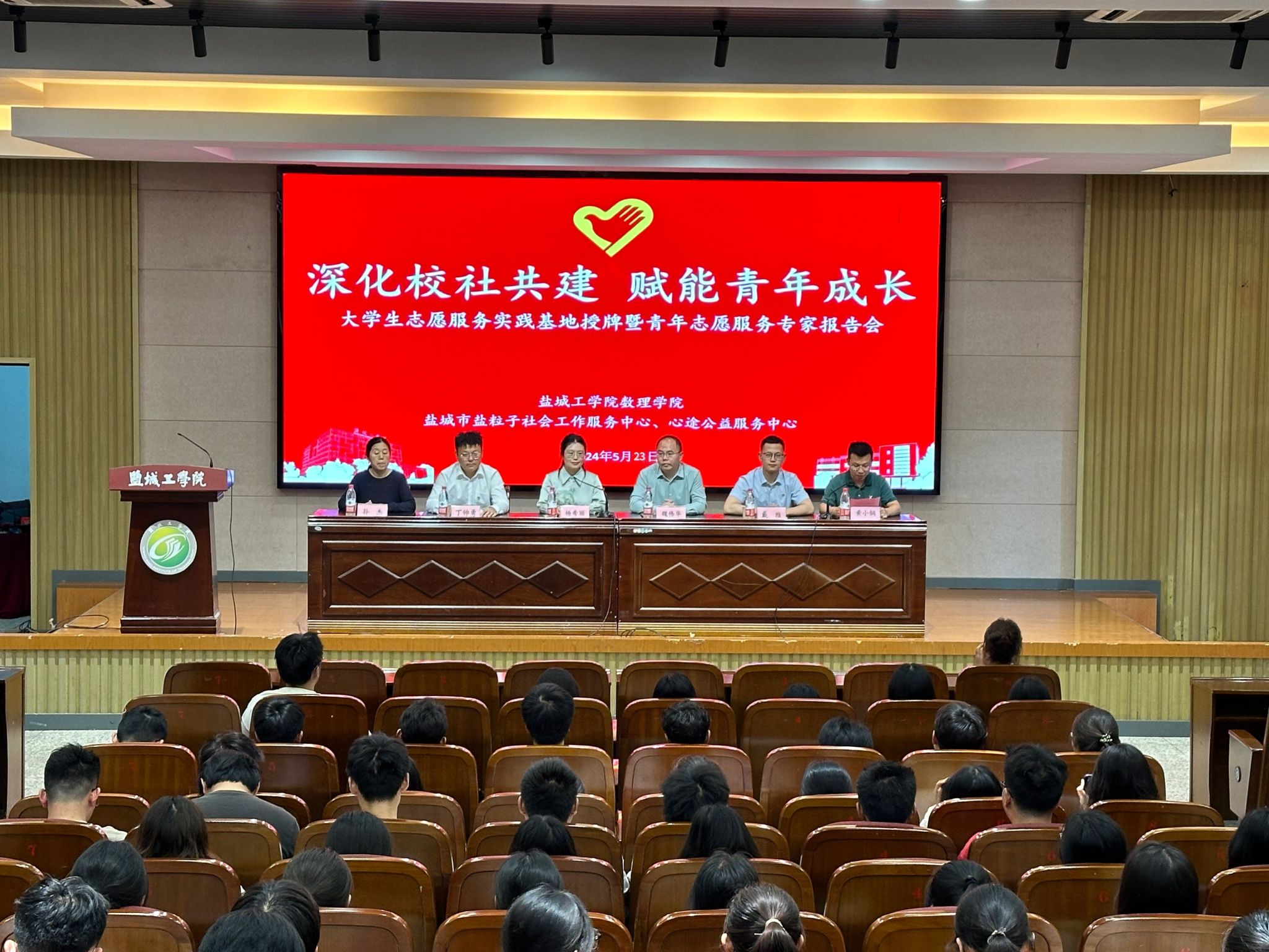 为深化志愿服务育人工作,引导广大青年老员工深入基层、奔赴一线,在奉献社会、服务人民中锤炼思想、体悟成长,勇做新时代的奋进者、开拓者、奉献者,5月23日下午,PA视讯官方网站联合盐城市盐粒子社会工作服务中心、心途公益服务中心共同举办以“深化校社共建,赋能青年成长”为主题的老员工志愿服务实践基地授牌仪式暨青年志愿服务专家报告会。校团委书记杨秀丽,江苏好青年、盐城好人,盐城市心途公益服务中心理事长丁帅勇、副理事长戴维,公司党总支书记魏伟华、学工办主任孙杰以及公司大一、大二全体员工参加。活动由辅导员黄小钢主持。