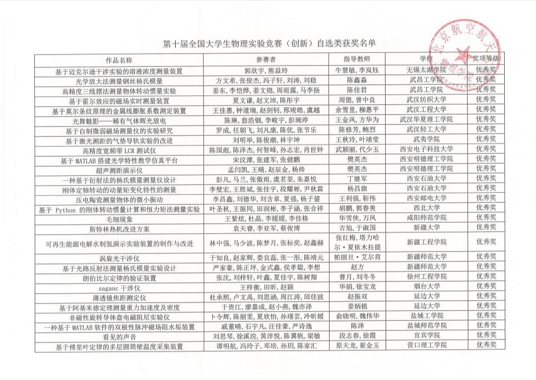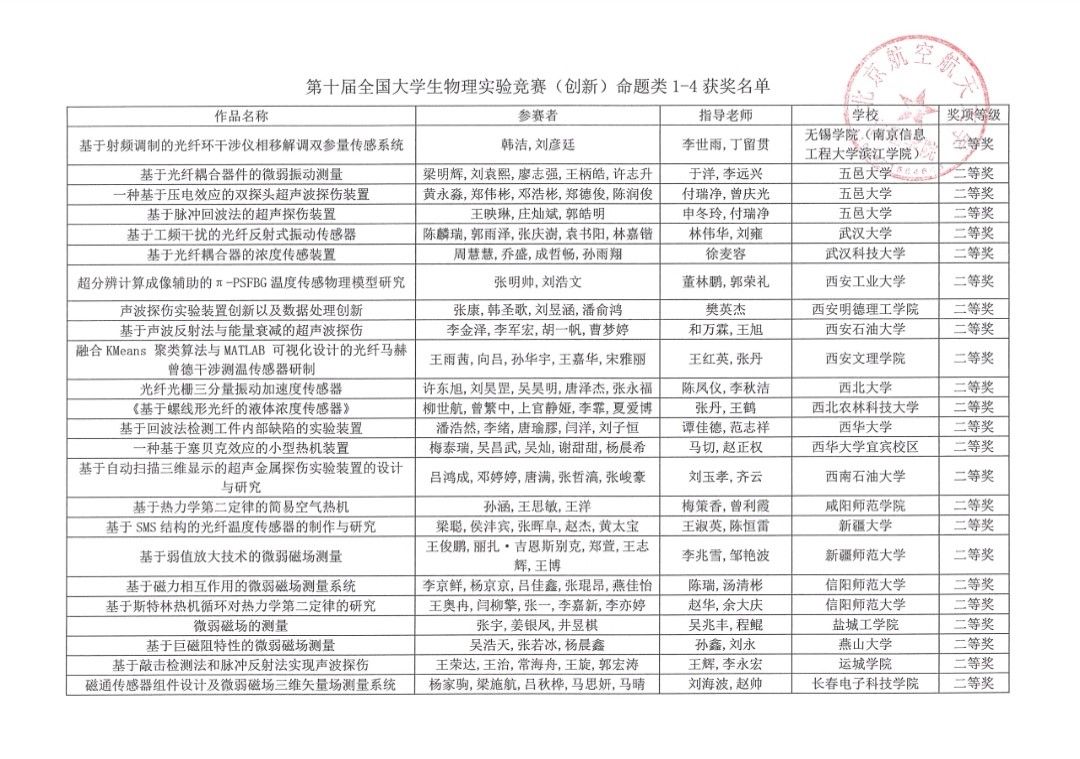 近日,第十届全国老员工物理实验竞赛(创新赛)结果公布,PA视讯官方网站推荐的6支参赛队斩获二等奖2项,三等奖3项,优秀奖1项,公司获得优秀组织奖。